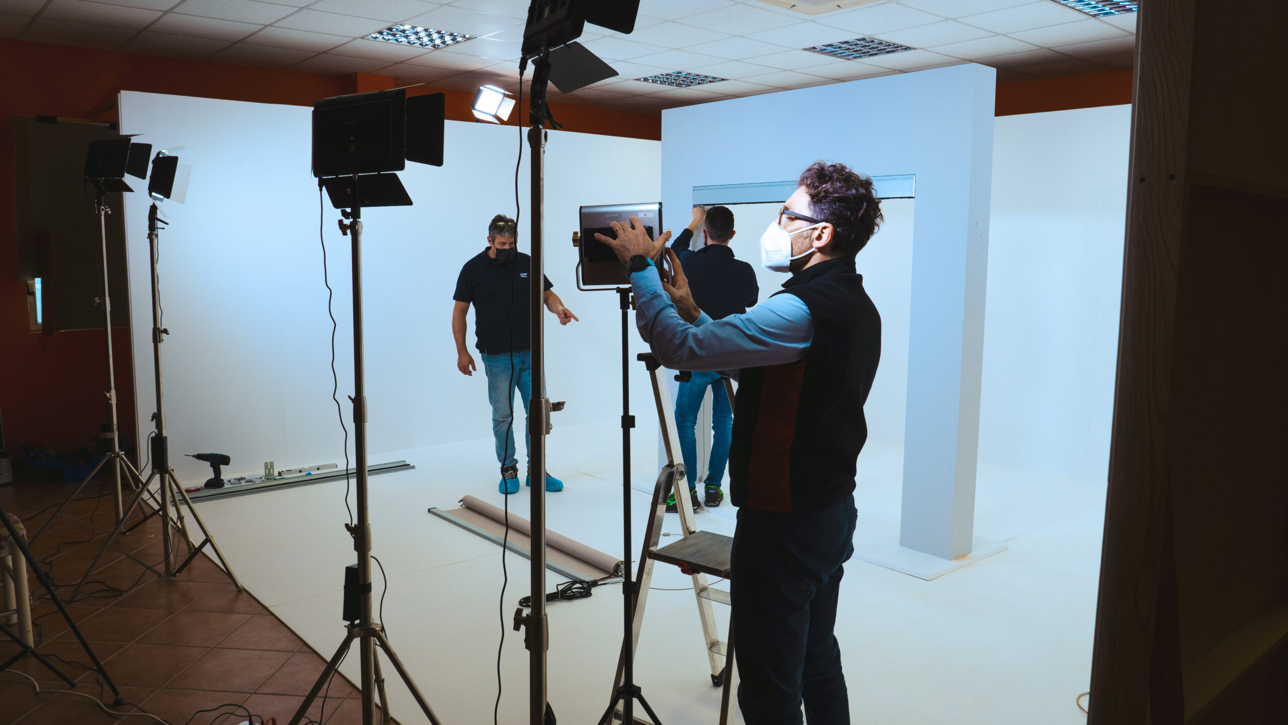 Data la quantità di video da girare è stato costruito ad hoc un limbo direttamente in azienda con una serie di fari led, in modo da avere sempre le stesse condizioni di luce.